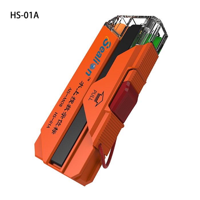 当HS-01A型开启工作时,可以向一定范围内所有配备AIS的船舶以及AIS岸基站发送含有GPS信息的AIS消息。每个设备都有一个独立的编码,以确保所有船员都可以被救援和关注到。为了便于夜间近距离救援,HS-01A型还配有一个超亮的LED信号灯。HS-01A型所配锂电池无需充电,开启工作后可至少使用36小时,储存寿命为5年。